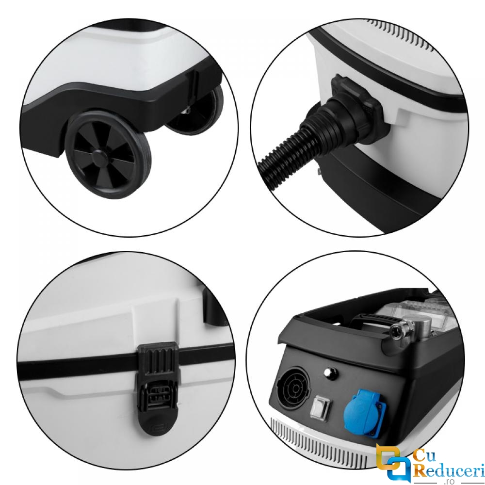 • Putere mare de aspirare de 1600W: colecteaza eficient atat deseuri solide, cat si lichide.