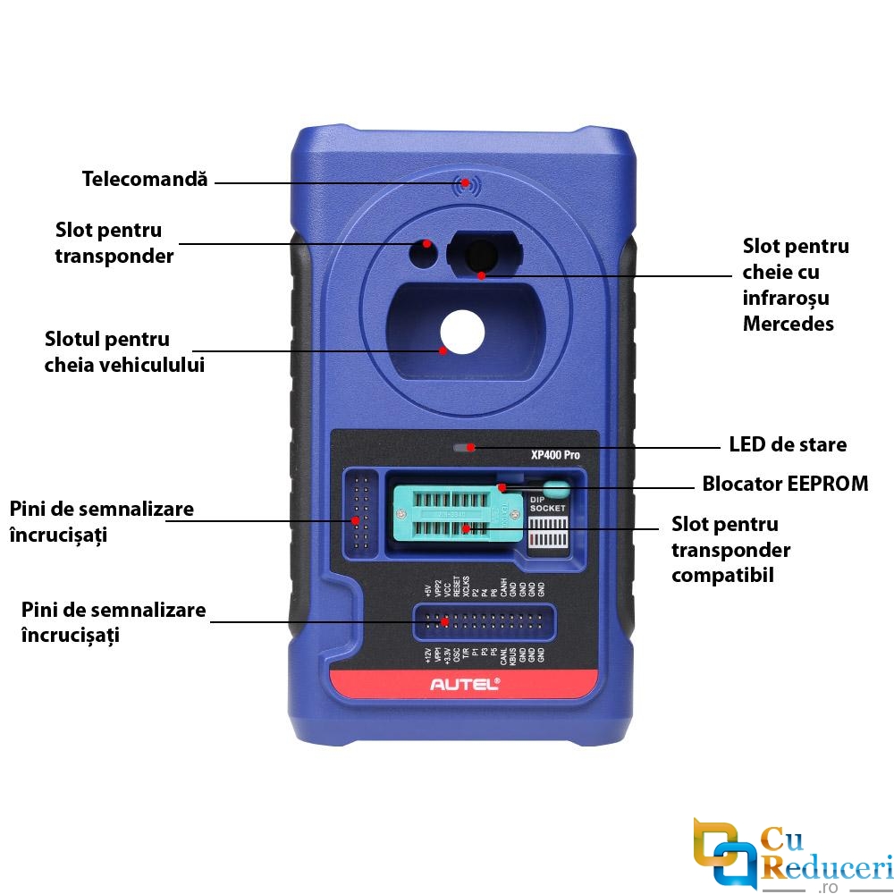 Autel XP400 PRO este un programator profesional all-in-one destinat atelierelor auto si specialistilor in programarea cheilor si sistemelor imobilizator. Dispozitivul este conceput pentru a functiona impreuna cu tabletele Autel din seria MaxiIM, oferind functii avansate pentru lucrul cu transpondere, EEPROM, MCU si ECU.