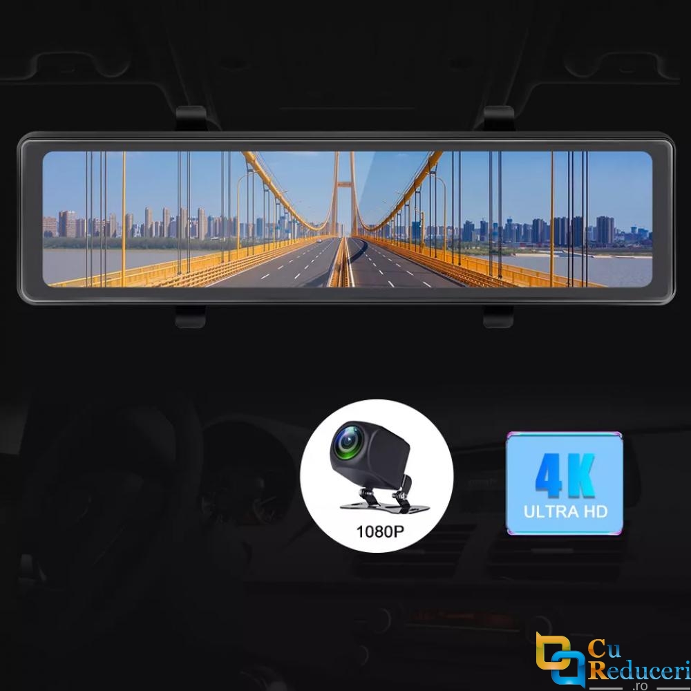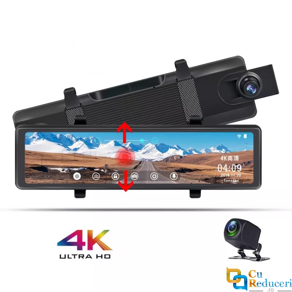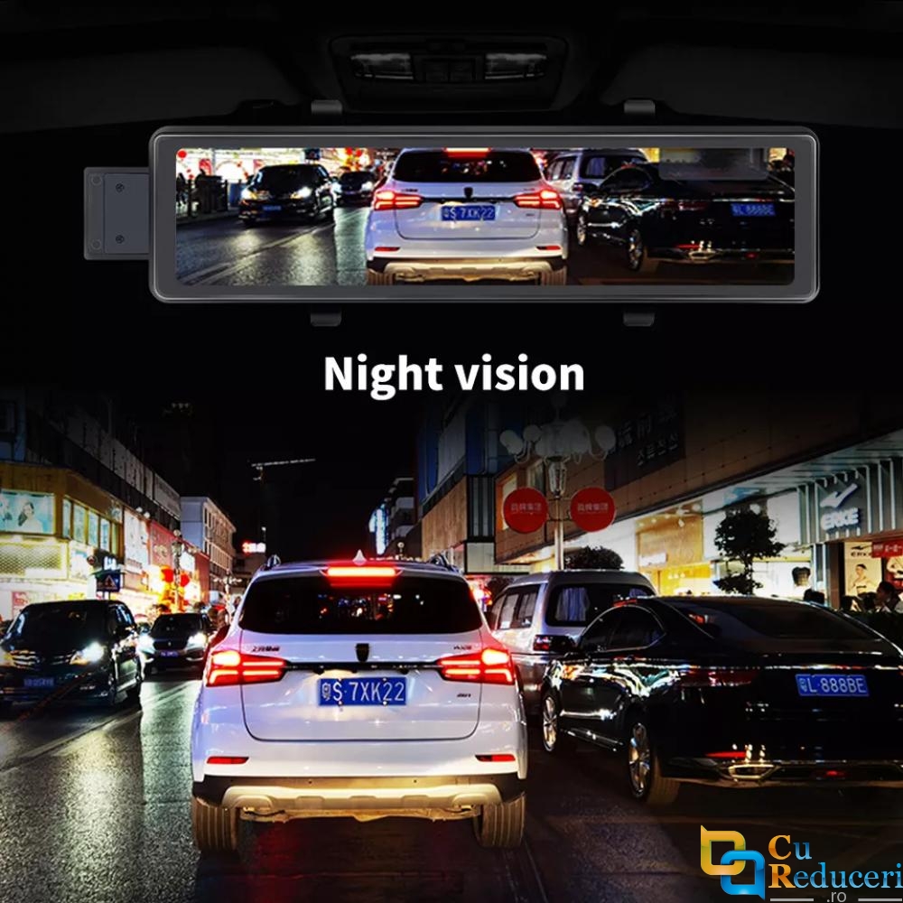 Oglinda retrovizoare a masinii va afisa automat un afisaj complet din spate de la camera din spate cu linii de ghidare atunci cand dati cu spatele, inregistrarea camelor fata la 170 ° si cea spate de 150 ° astfel va ajuta sa va parcati vehiculul mai usor si mai sigur.