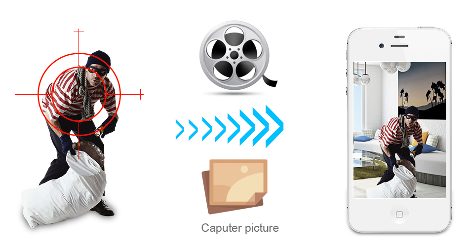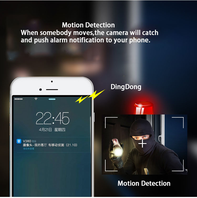 Puteti seta camera sa detecteze obiectele aflate in miscare si sa declanseze alarma. Prin e-mail este transmisa o notificare catre utilizator, camera poate sa fie setata sa faca poze sau sa inceapa inregistrarea cand detecteaza miscare.