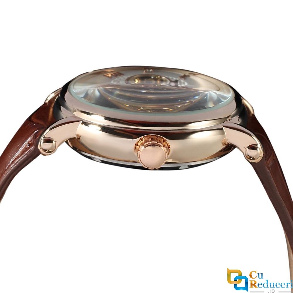 Ceas Forsining schelet barbatesc automatic Gold, bratara din otel