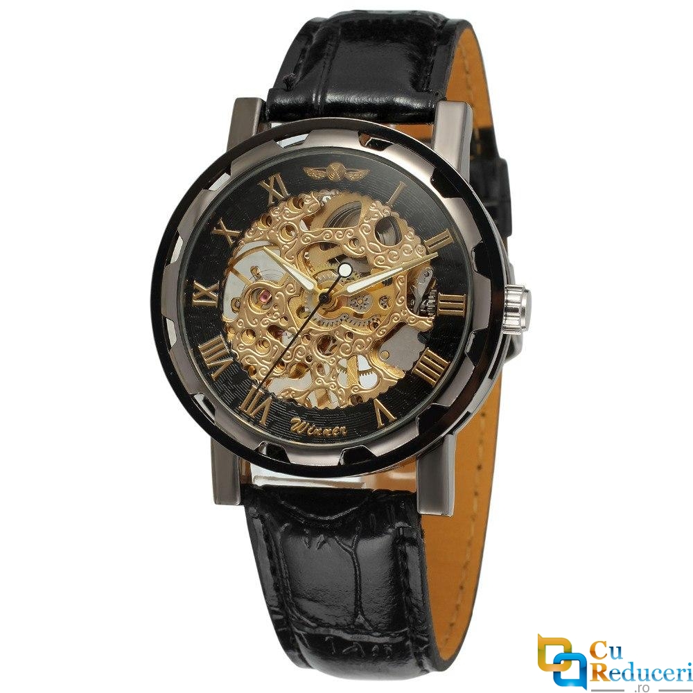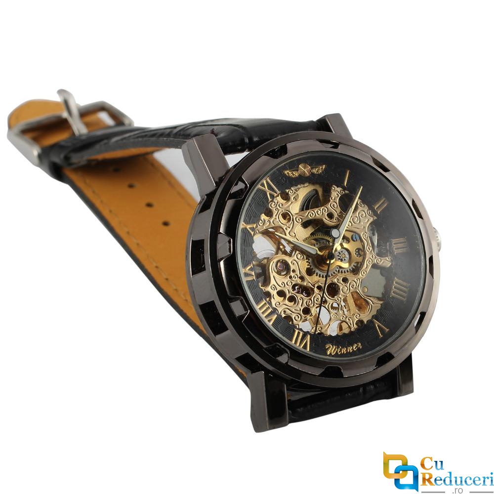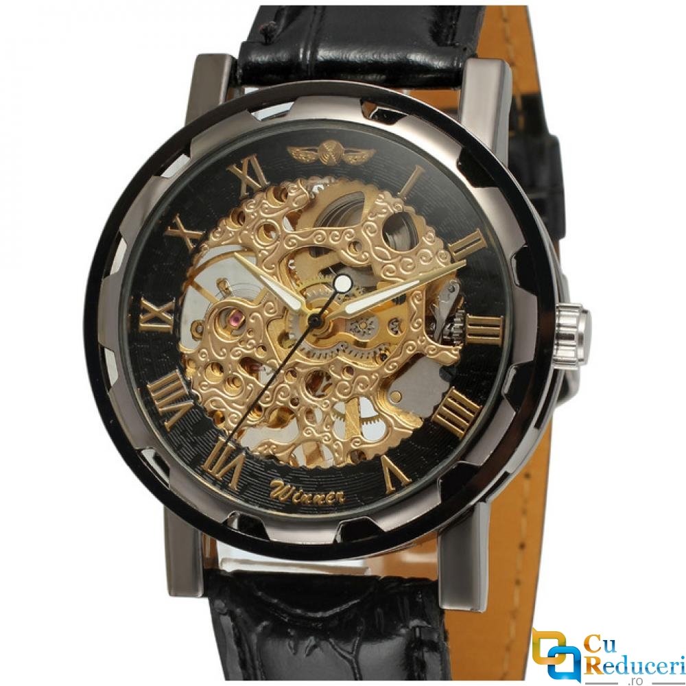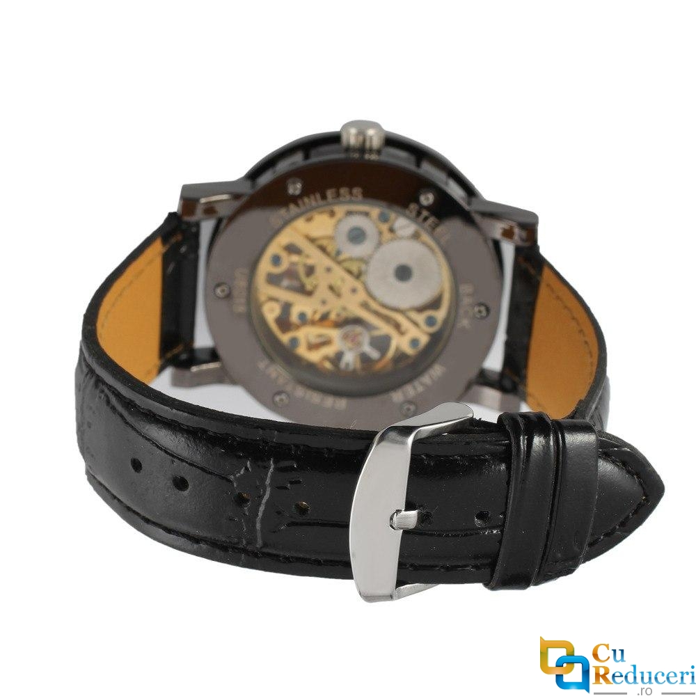 Ceas Forsining schelet barbatesc automatic Gold, bratara din otel