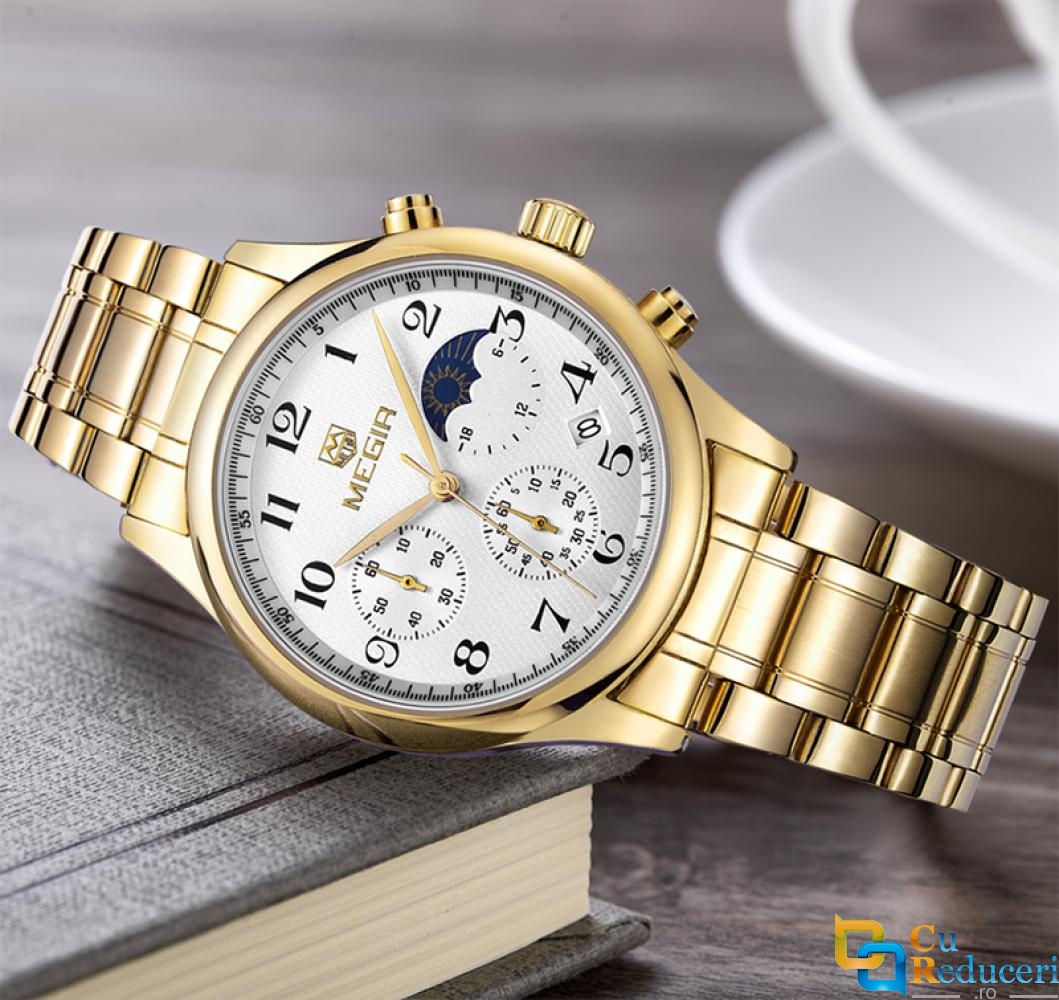 • Caracterestici: Rezistent la apa, Calendar Complet, Moon Phase, Cronograf