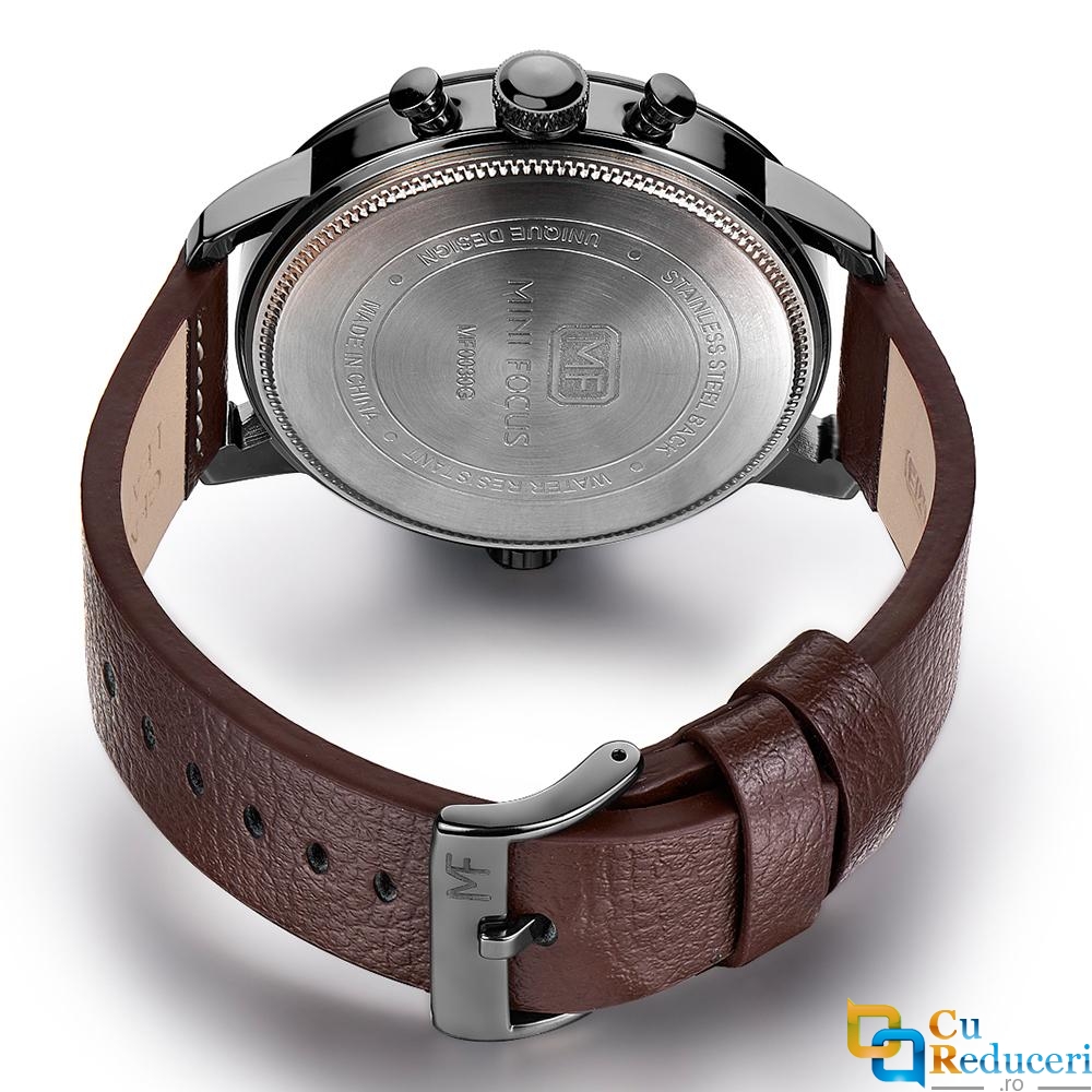 Ceas barbatesc Forsining cu Moon Phase (arata noapte/zi), curea din