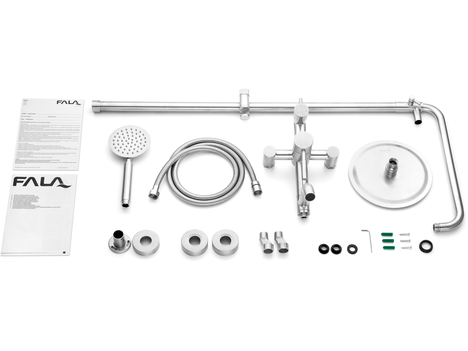 Setați conținutul: baterie | cap de duș | furtun de dus cu garnituri | duș cu ploaie | tija de dus | came cu rozete și sigilii