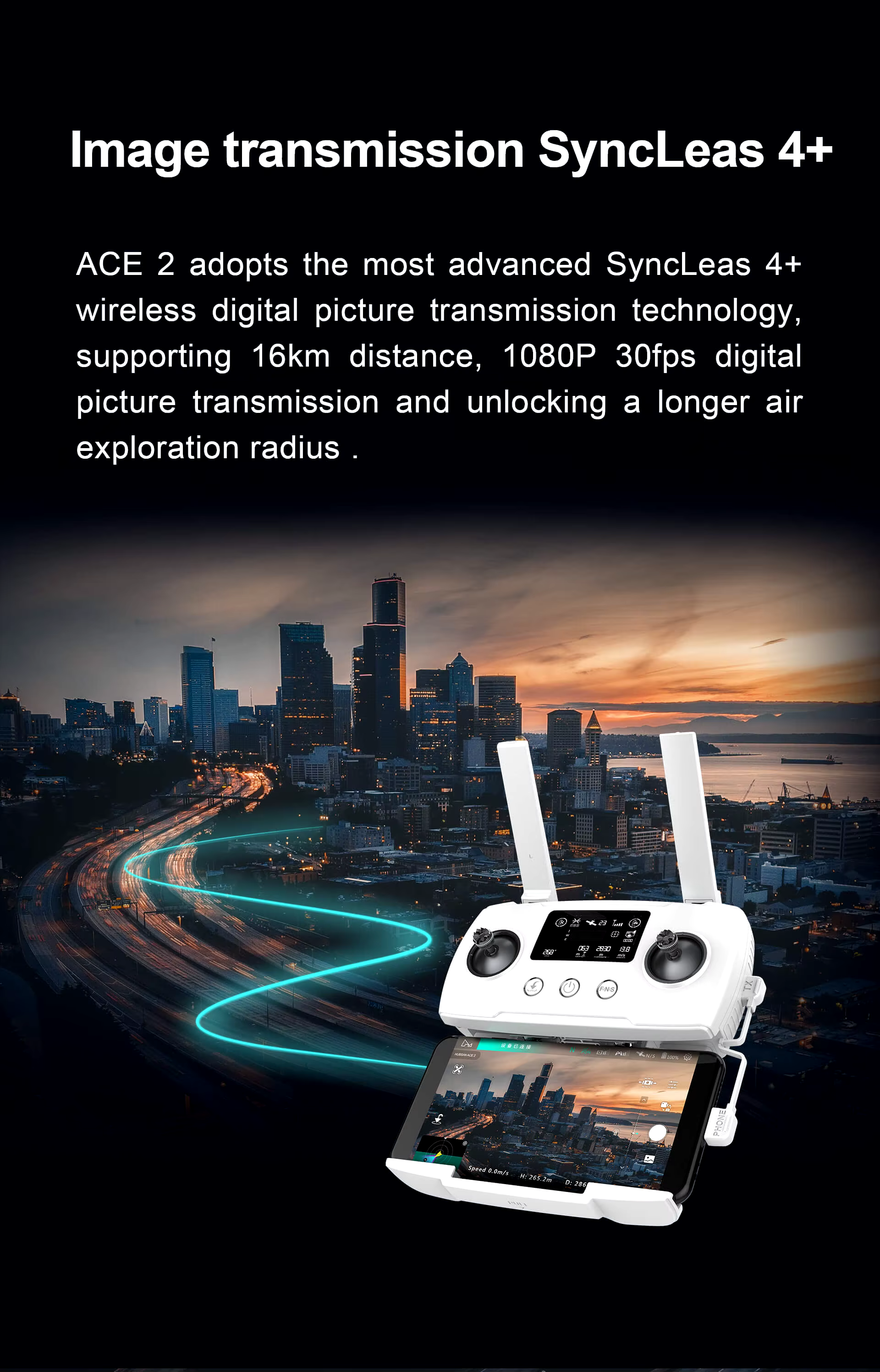 Controlul Wifi 5G pentru a realiza transmisia in timp real a videoclipurilor prin asocierea aplicatiei mobile la wifi-ul dronei. Sunt disponibile telefoane mobile cu IOS sau sistem Android.