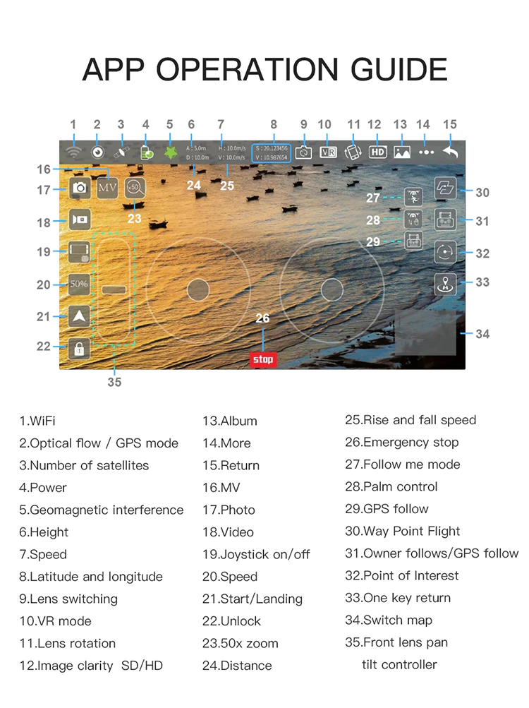 Modul de control al gravitatiei: va permite sa acoperiti drona inainte / inapoi / stanga / dreapta in corespundere cu unghiul telefonului mobil.