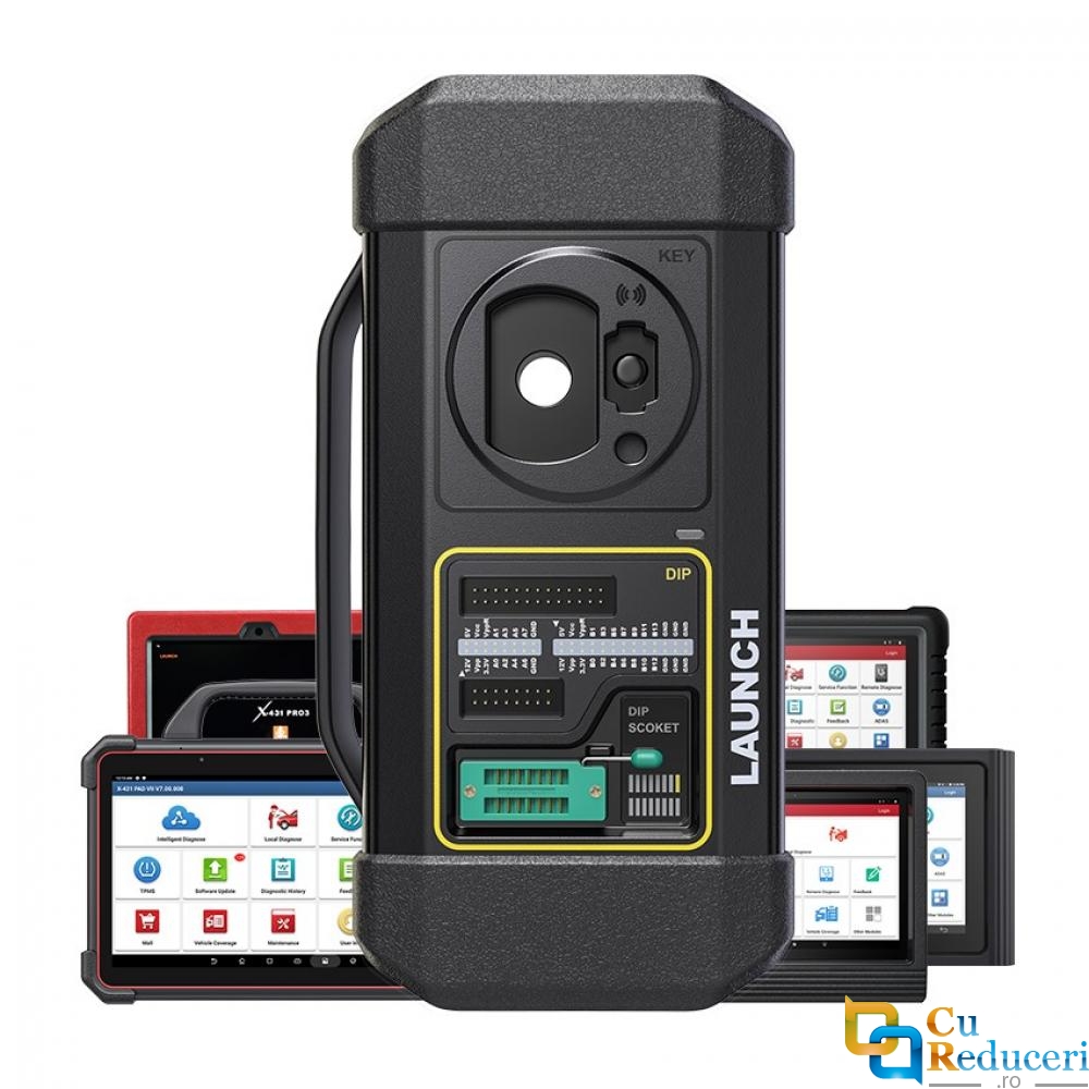 Pentru utilizarea completa a functiilor (ex: clonare ECU/TCU) este necesara o tableta Launch X-431 compatibila (PRO3, PAD V, PRO5 etc.).