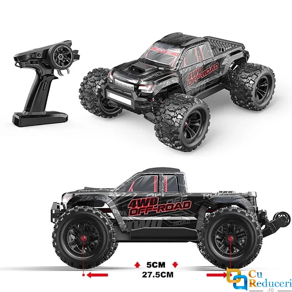 Descopera performanta pura si adrenalina la superlativ cu masina RC MJX 10208, un model de top la scara 1:10 care redefinește experienta condusului off-road. Proiectata pentru pasionatii de viteza si control precis, aceasta masina cu tractiune integrala 4x4 este echipata cu un motor puternic fara perii 3970-2500KV, cu radiator si ventilator din aluminiu, ceea ce ii permite sa atinga viteze uimitoare de pana la 80 km/h. Indiferent de teren, fie ca este vorba de asfalt, pietris, nisip sau pamant accidentat, acest model se adapteaza perfect, ramanand stabil si usor de controlat datorita unui design echilibrat si a unei caroserii din PVC rezistent la impacturi.