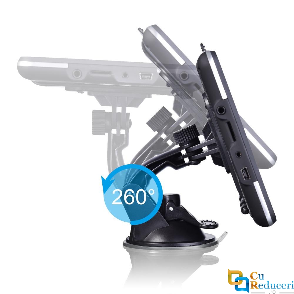 Sistemul GPS de navigatie prin satelit vine cu procesor de inalta performanta, memorie ROM de 8 GB, memorie RAM de 256 MB incorporata, suporta memorie extinsa de pana la 32 Gb, spatiu suficient pentru stocarea hartilor si a materialelor. Vine de asemenea, cu un incarcator auto, suport pentru suportul din spate, (nu include Card SD / TF).