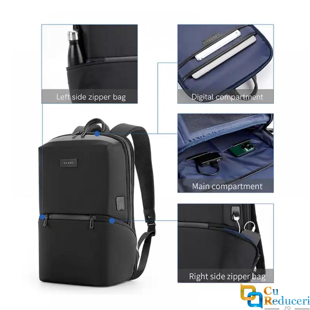 Confectionat din materiale de inalta calitate si durabile, fermoare rezistente la uzura, are o tesatura puternica si design structural bine conceput, cu o durata de viata de pana la cativa ani. Peretii laterali grosi si baza robusta, va asigura protejarea obiectelor de valoare si pastrarea formei rucsacului, chiar daca acesta nu este plin.