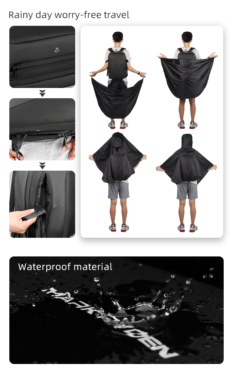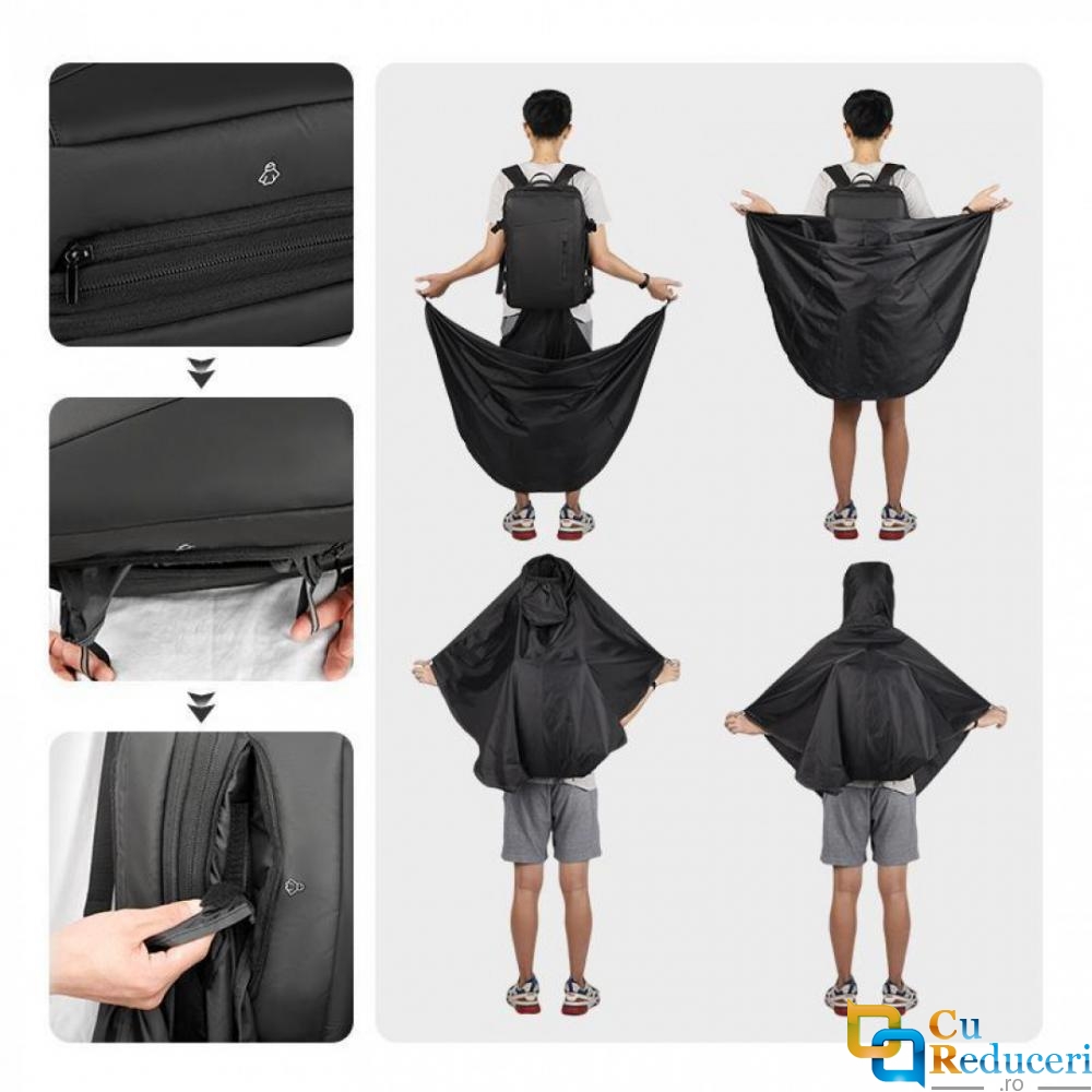 Acest rucsac laptop are incorporat o pelerina impermeabila la baza, ceea ce il face perfect pentru vremea ploioasa.