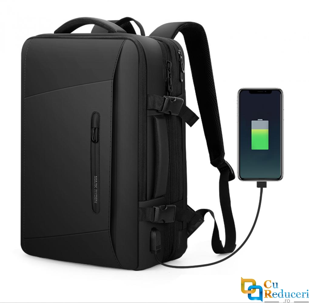Port de incarcare USB - va permite sa va incarcati telefonul mobil atunci cand va deplasati. Rucsacul Mark Ryden Smart vine impreuna cu un cablu USB la care puteti conecta o baterie externa, un port USB la care puteti conecta cablul de incarcare al telefonului. In plus rucsacul are un buzunar captusit pentru laptop, ideal pentru laptopurile de 17,3” oferind astfelo acoperire remarcabila, de inalta calitate impotriva loviturilor de zi cu zi.