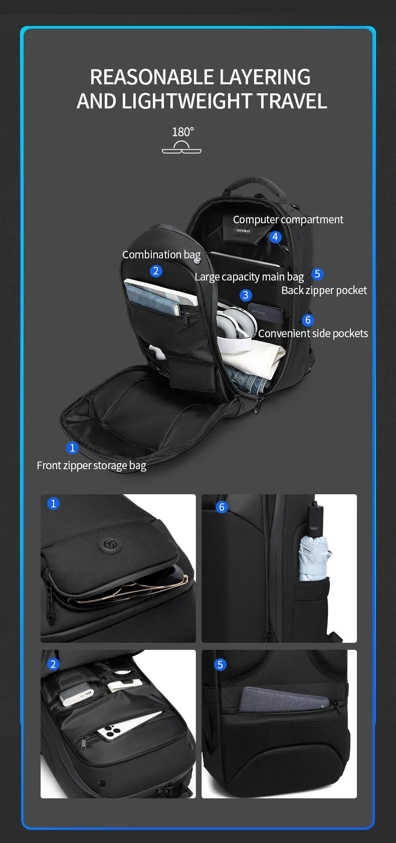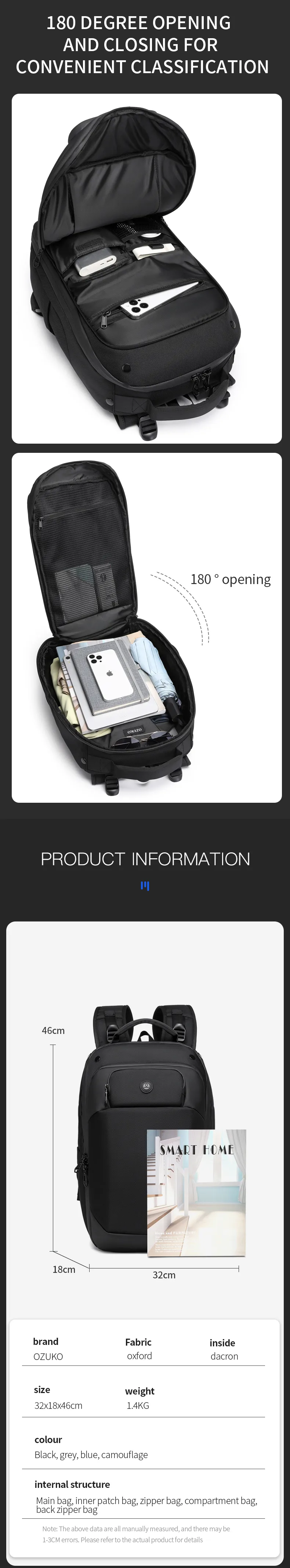 Rucsacul pentru laptop OZUKO 9717 este creat pentru a oferi functionalitate si stil intr-un design modern si elegant, perfect pentru utilizare zilnica sau calatorii.