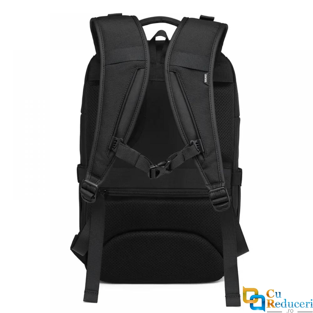 Cu o capacitate de 26 litri, rucsacul OZUKO 9717 ofera suficient spatiu pentru toate obiectele esentiale. Culoarea neagra confera un aspect elegant si usor de asortat. Este compatibil cu laptopuri de pana la 15.6 inch si tablete de pana la 9.7 inch, facandu-l ideal pentru transportul dispozitivelor electronice.