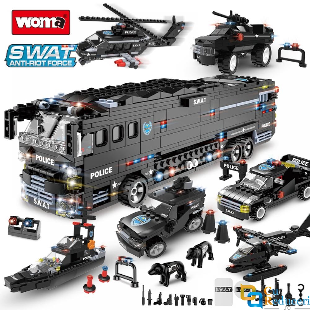 Intra in actiune cu Setul de constructie Woma® SWAT 6 in 1, un pachet complet dedicat pasionatilor de vehicule tactice si misiuni speciale! Cu 1014 piese, acest set oferasi o experienta de joaca si asamblare complexa, ideala pentru copii de peste 6 ani si pentru colectionari.