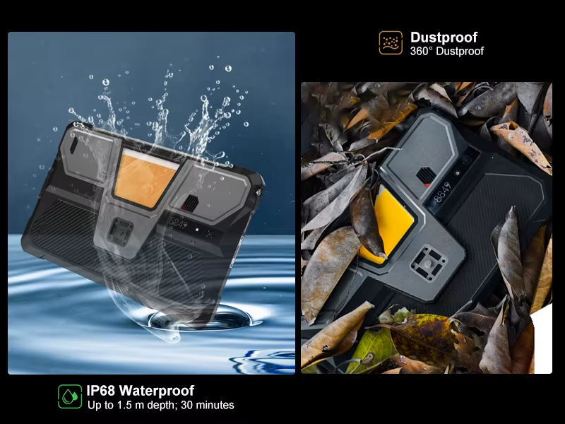 Construita pentru a rezista celor mai dure provocari, tableta dispune de certificari IP68, IP69K si MIL-STD-810H, fiind rezistenta la praf, apa si socuri. Designul sau robust o transforma intr-un partener ideal pentru mediile de lucru solicitante sau aventurile in aer liber.