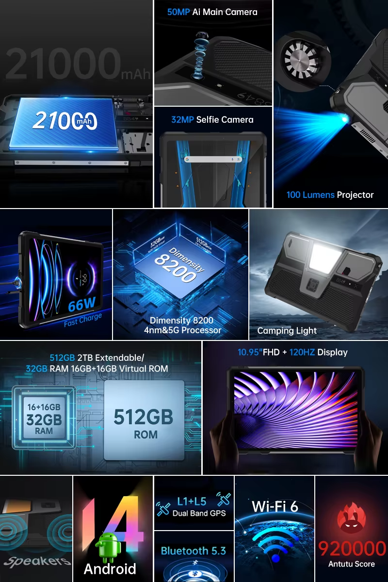 Tableta Unihertz 8849 Pad Tank este o combinatie impresionanta intre performanta, rezistenta si tehnologie moderna, creata pentru cei care au nevoie de un dispozitiv puternic si fiabil in orice conditii.