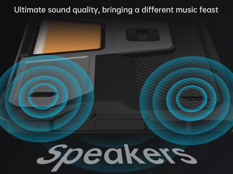 Difuzoarele duble stereo ofera un sunet puternic si clar, completate de o lampa de camping integrata, ideala pentru utilizarea in aer liber. Tableta mai dispune de port audio jack 3.5 mm si USB Type-C 2.0, asigurand compatibilitate extinsa cu diverse accesorii.