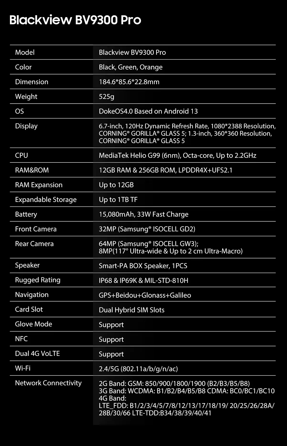 Blackview BV9300 PRO este un telefon robust È™i puternic, construit pentru a face față cerinÈ›elor tale de zi cu zi È™i pentru a rezista în condiÈ›ii extreme. Cu un design durabil È™i specificaÈ›ii tehnice avansate, acest telefon îÈ›i oferă performanÈ›e remarcabile într-un mediu de lucru sau de aventură.