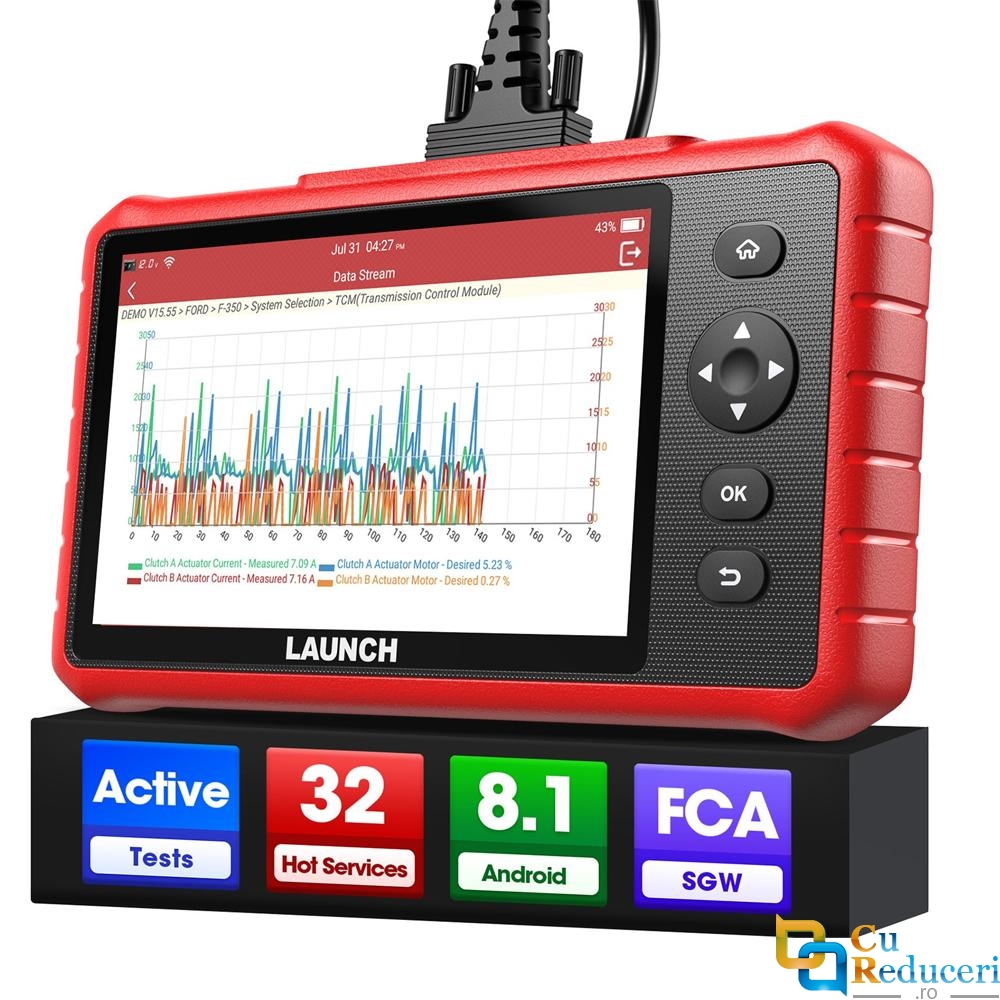 Launch CRP919X LITE include o gama extinsa de functii speciale de service, precum resetare interval ulei, resetare frane electronice, resetare baterie, regenerare DPF, resetare TPMS, calibrare unghi directie, codare injectoare, adaptare cutie de viteze, resetare AdBlue, resetare senzori NOx, calibrare geamuri, calibrare scaune si multe altele. De asemenea, suporta testare activa (bidirectionala), permitand controlul direct al componentelor pentru diagnosticare avansata.