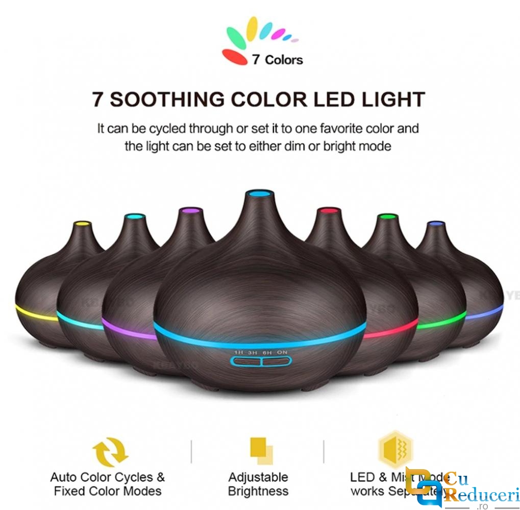 Aparatul poate fi programat sa functioneze 1H, 3H, 6H sau continuu iar atunci cand ramane fara apa difuzorul se va opri automat.